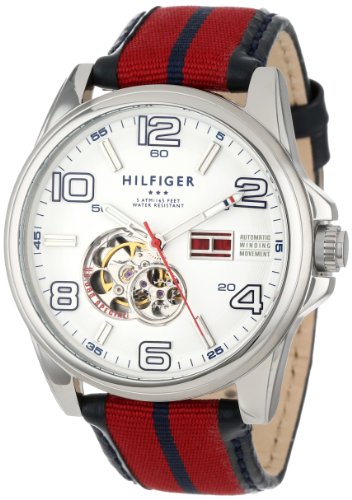 - Nautical by nature, this Tommy Hilfiger watch pays homage to the sportsman's lifestyle with masculine details such as exposed mechanisms and a leather and striped grosgrain band.